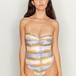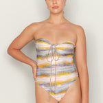 Flirty one piece with cut outs, tie front and moderate bottom coverage. Fixed straps for a seamless look. No adjusters. Featured here in our buttery soft waffle textured fabric.
