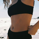 - Made from Econyl - a sustainable swim fabric made from recycled plastic found in the ocean