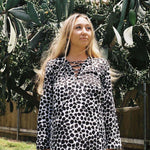 Long sleeved tunic mini dress with lace up front detail.