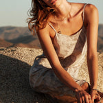 Slip dress cut on the bias with cowl back line and adjustable straps.