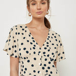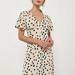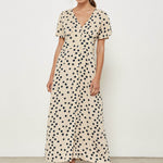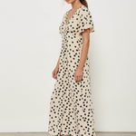 Maxi dress with flutter sleeve and button down front. Fully lined.