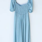 Midi dress with smocked bust and full sleeves