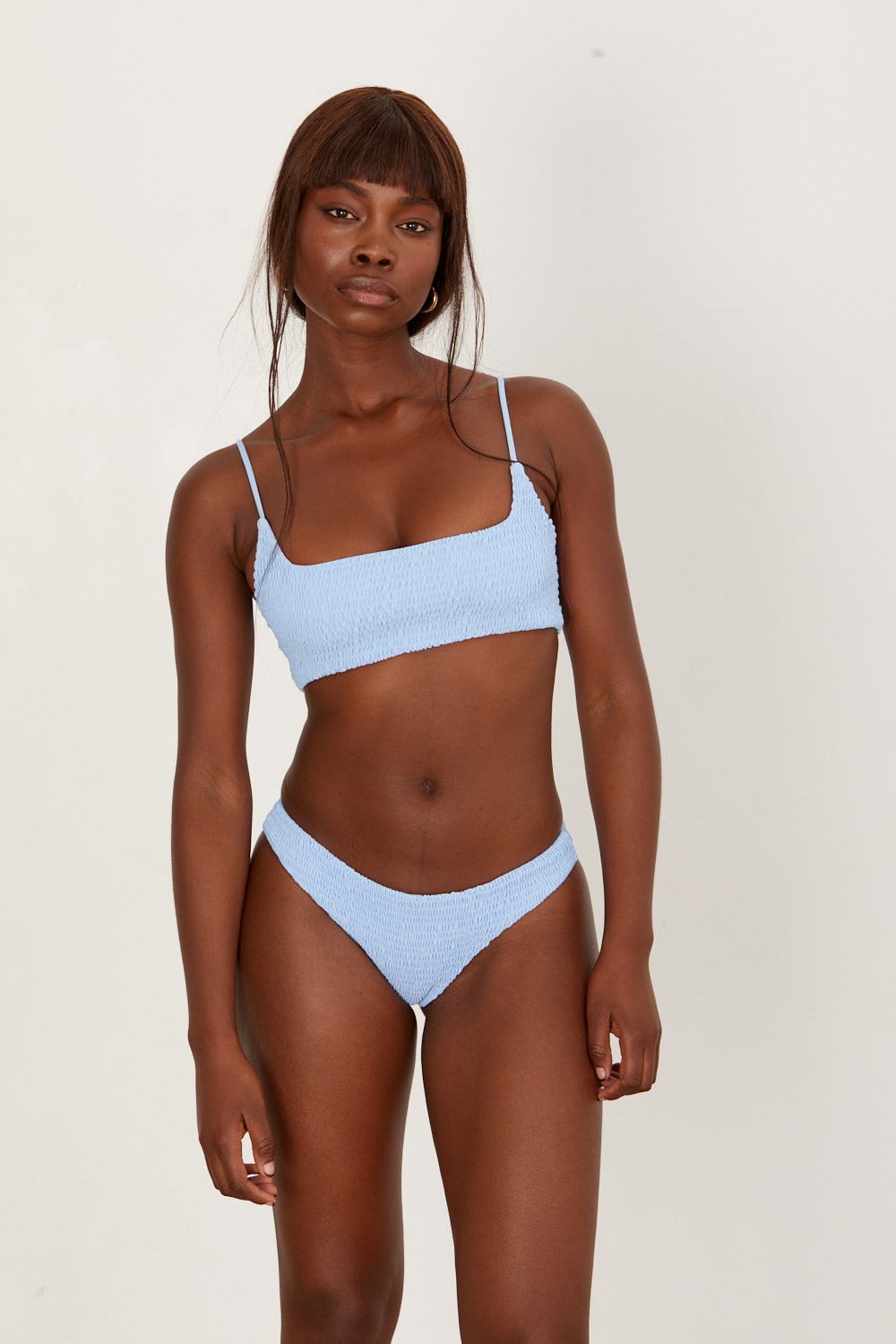 Our Oceania bottoms have the exact same fit as our signature Ocean bottoms, but are featured in our smocked textured fabric