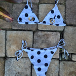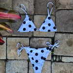 Adjustable triangle top with fixed straps and resin ring detail. Paired with the Ella Bottom.